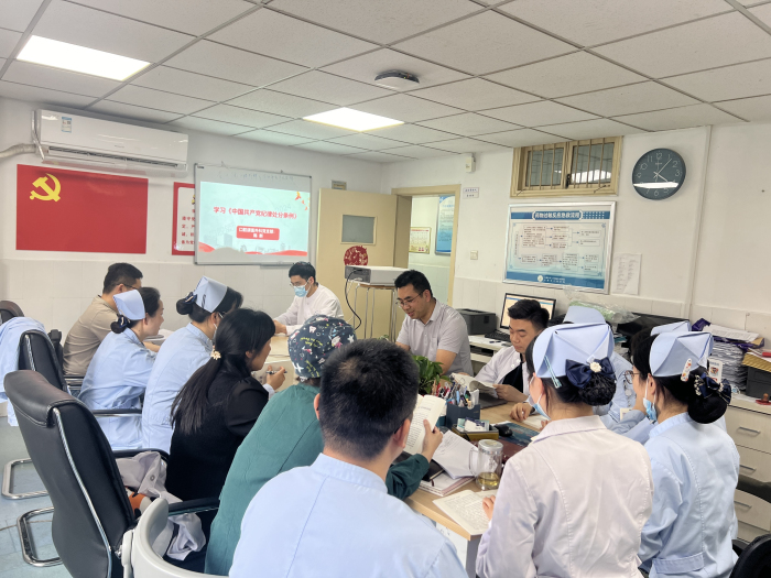 5月9日下午,我院口腔颌面外科党支部在四楼医生办公室集中学习《中国共产党纪律处分条例》,支部书记陈新主持会议。