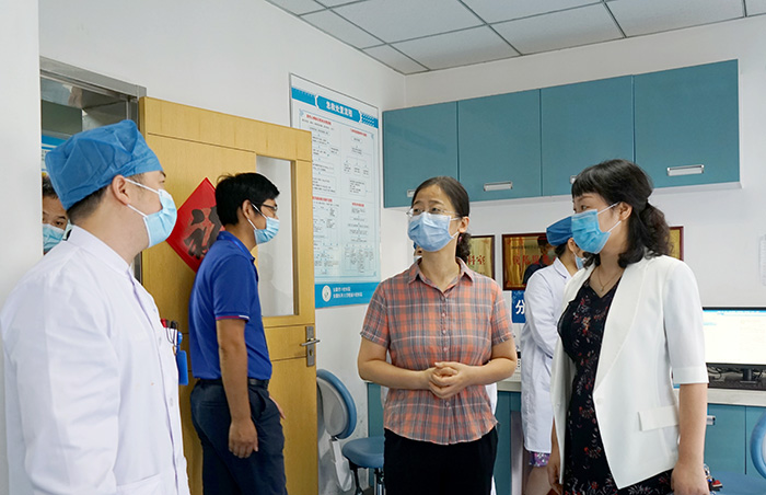黄新美先后到我院挂号收费处、口腔种植中心、口腔颌面外科病房、快递存放点等场所实地走访查看,检查门诊预检分诊、院感防控、患者就诊等一线区域的疫情防控部署与落实情况,听取相关科室负责人汇报,进一步了解了我院疫情常态化防控工作进展、疫情防控管理制度落实等情况。